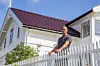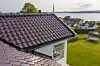 - Da vi hadde hus i Drammen la vi glasert takstein, og det er like fint nesten 40 år etterpå. Mot hvit fasade som her er det burgunder som er finest. Du slipper å skifte taket igjen, og du slipper å vaske, for det gjør regnet, forteller hun. Helt konkret er det KDN Glasert Vinrød som er kronen på verket.