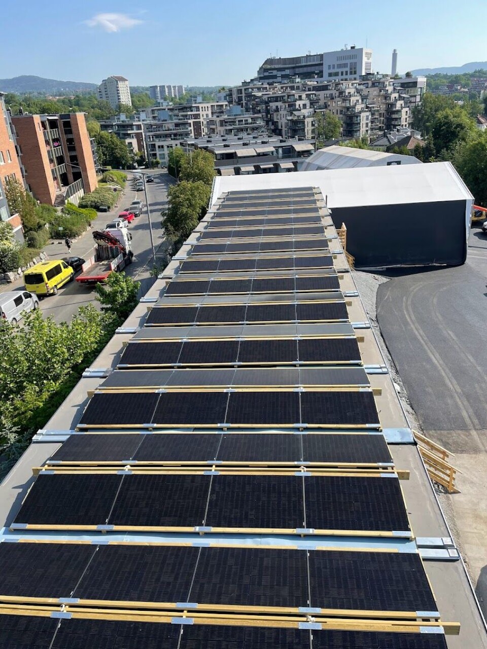 På brakketak på Implenia Norges komplekse infrastrukturprosjekter blinker over 1000 solcellepaneler i solskinnet. Med sitt egenutviklede modulære og portable solcellesystem er Implenia Norge en pionér i anleggsbransjen – og reduserer både utslipp og kostnader i prosessen.
